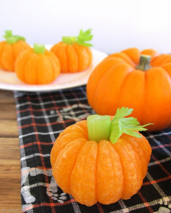 We love this healthy snack option from Bren Did, which is as easy as peeling a tangerine, slicing celery and sticking a piece of the celery down the center of the tangerine.