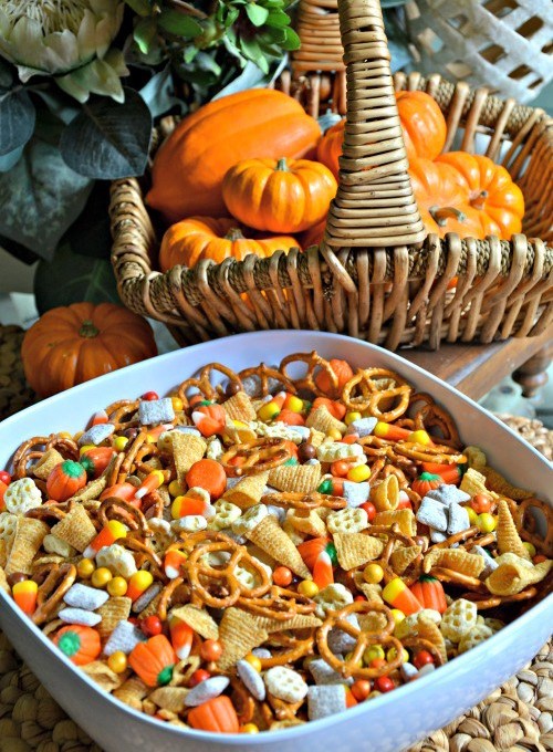 The House of Hendrix created this delicious trail mix, which includes pretzels, Candy Corn, M&M’s and Chex Mix. Now, there are ways to make this a bit more healthy, by substituting Candy Corn with items like nuts or raisins. The great thing about trail mix is there really is no wrong way to make it!