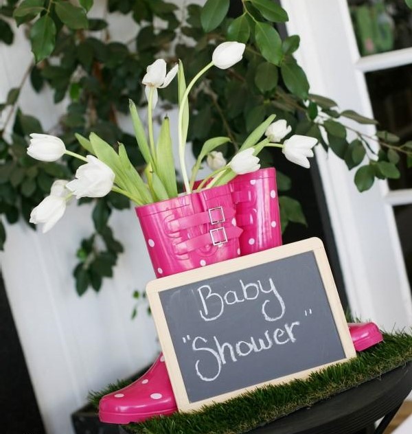 What a clever idea to play on the theme of “April showers” by decorating with rain boots and umbrellas! Love this rainy day inspiration from Celebrations.